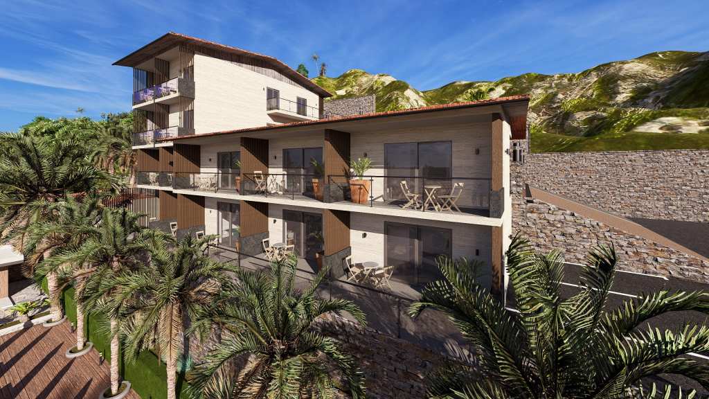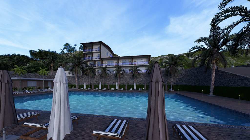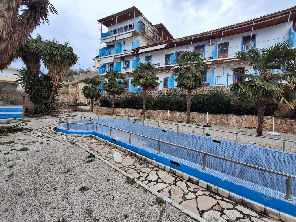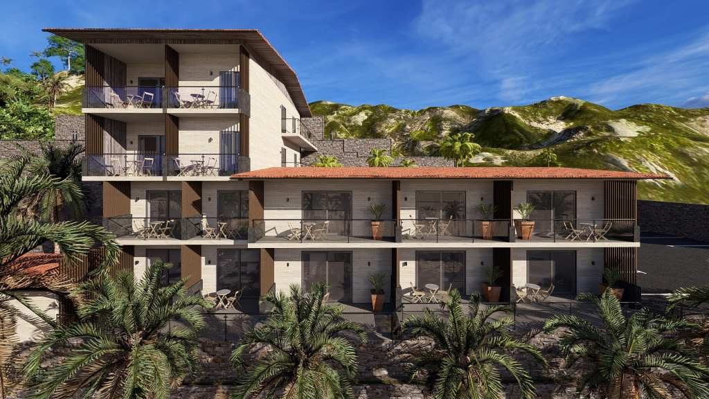 The hotel was build 25 years ago. Has a total area of 570 sq.m., situated on a 4000 sq.m. (0.4 hectare) plot. It includes 20 guest rooms and offers a direct view of the Mediterranean Sea. The hotel is located on a terraced (hilly) site. There are entrances 50 5 rooms on the ground floor from front facade and separate entrances 70 7 rooms on the first floor from mountain side. Additionally there are 4 rooms on the second floor and 4 rooms on the third floor.